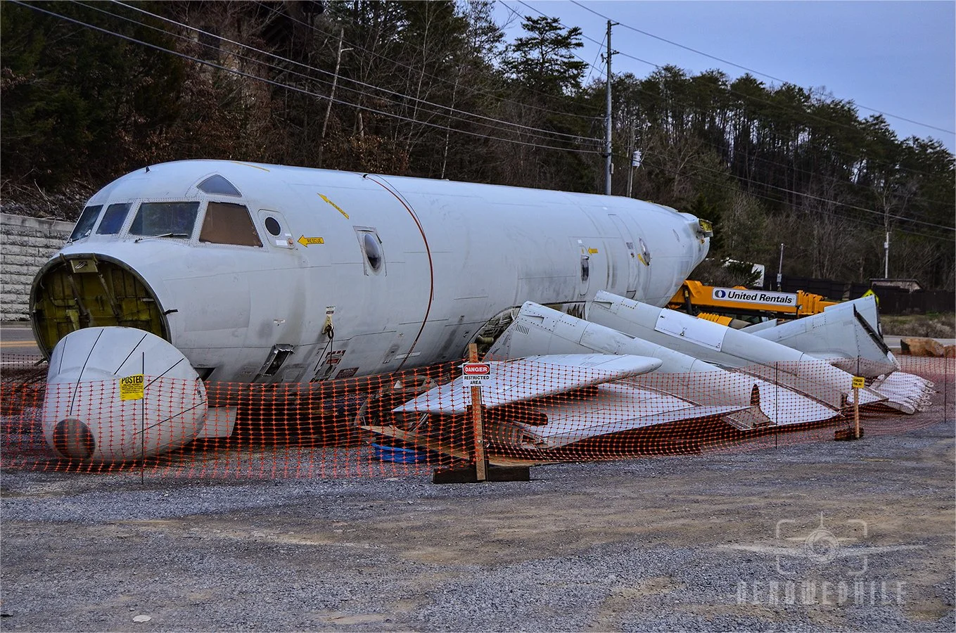 An unusual discovery was made on the side of a winding road outside of Sevierville, TN that I just had to see for myself. So I made the trip over to the Smoky Mountains to see this partially dismantled EX-US Navy/NASA P-3C Orion (Bu 161008, N436NA) sitting in a gravel lot like a roadside attraction.